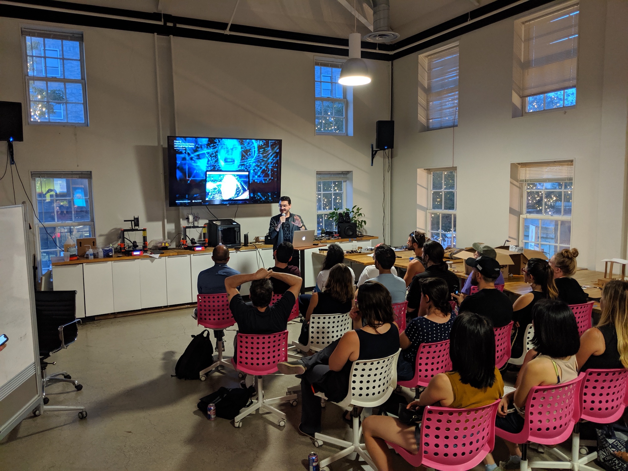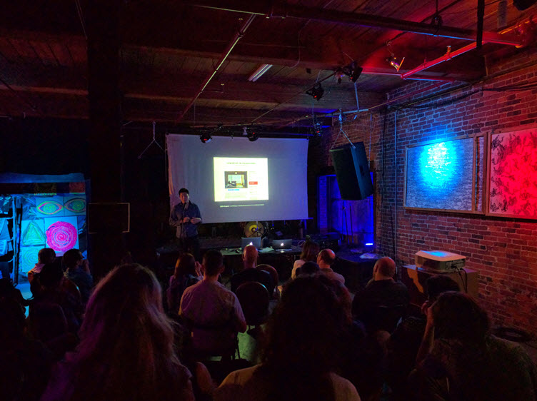 In October, we held our 3rd annual demo night at the Piper auditorium in Harvard's Graduate School of Design. We had a strong showing of about 25 artists and makers who presented their work to about 150 attendees.